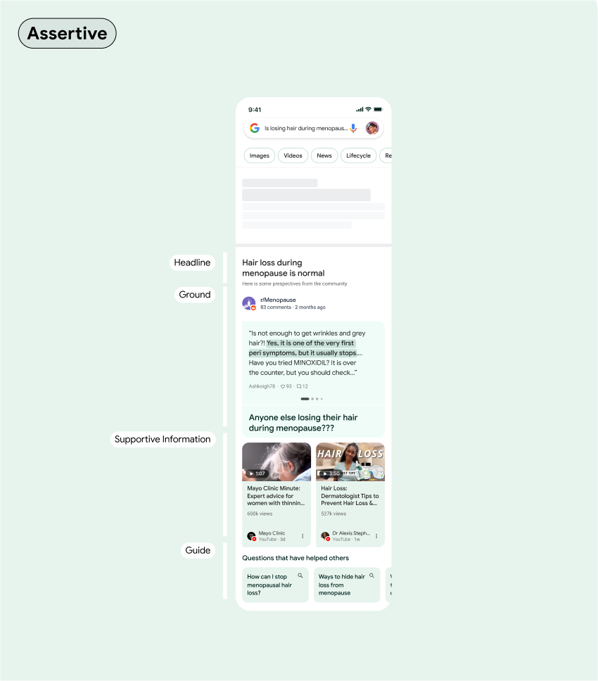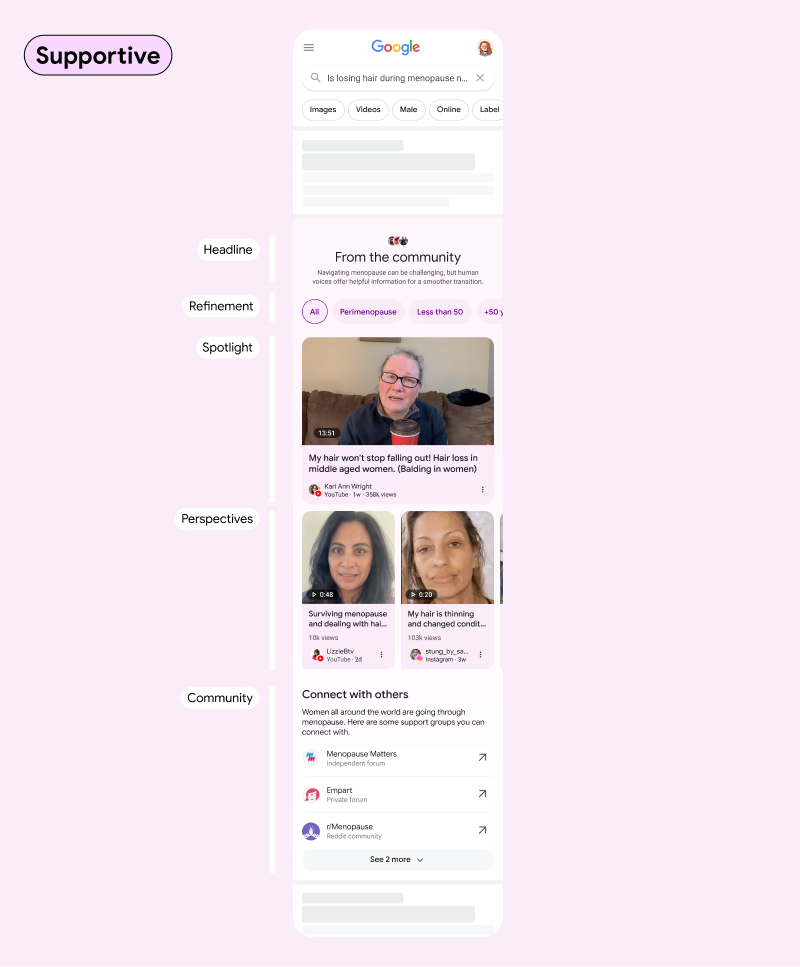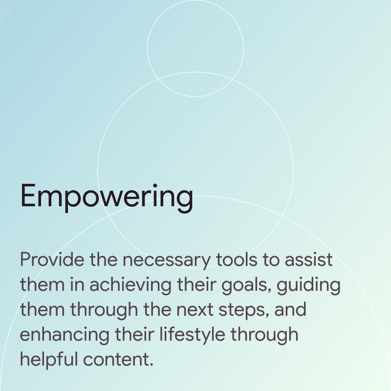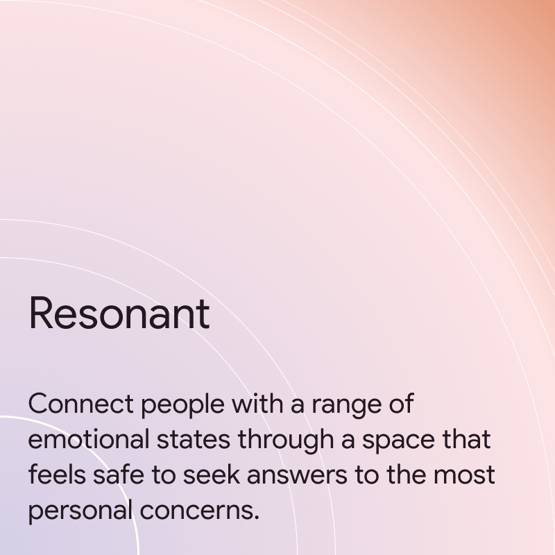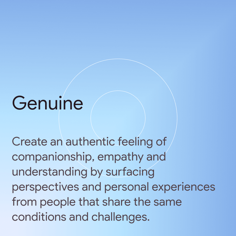 These insights informed our strategic decision to evolve the Google Search health experience. Our goal was to create a solution that was Genuine, Resonant, Empowering, and Contextual, allowing users to feel truly understood and connected throughout their health journey.
