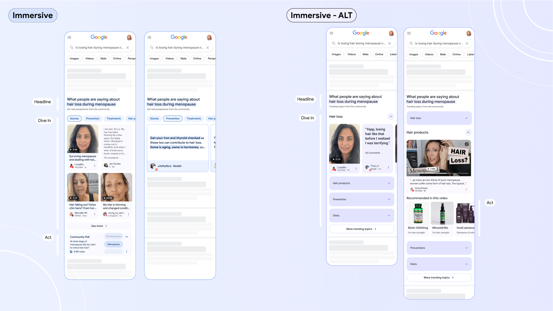 These pillars served as our guiding principles. We explored existing visual and user experience design elements within and beyond Google that embodied these attributes. This exploration provided a roadmap for crafting the look and feel of the search experience.