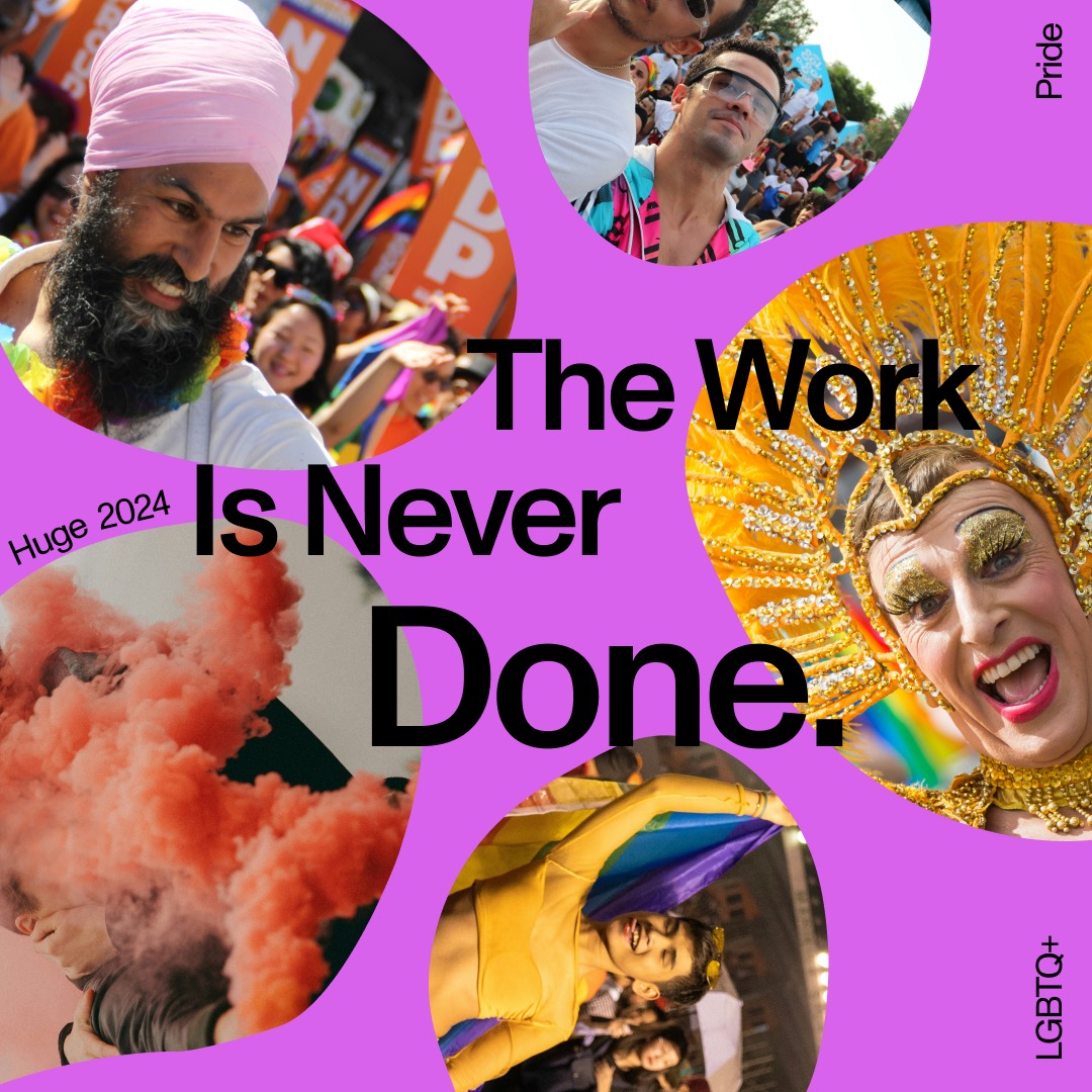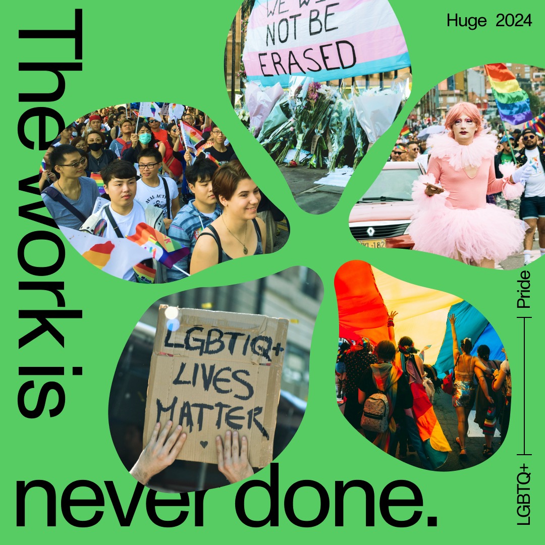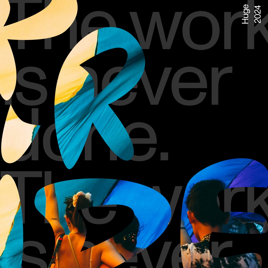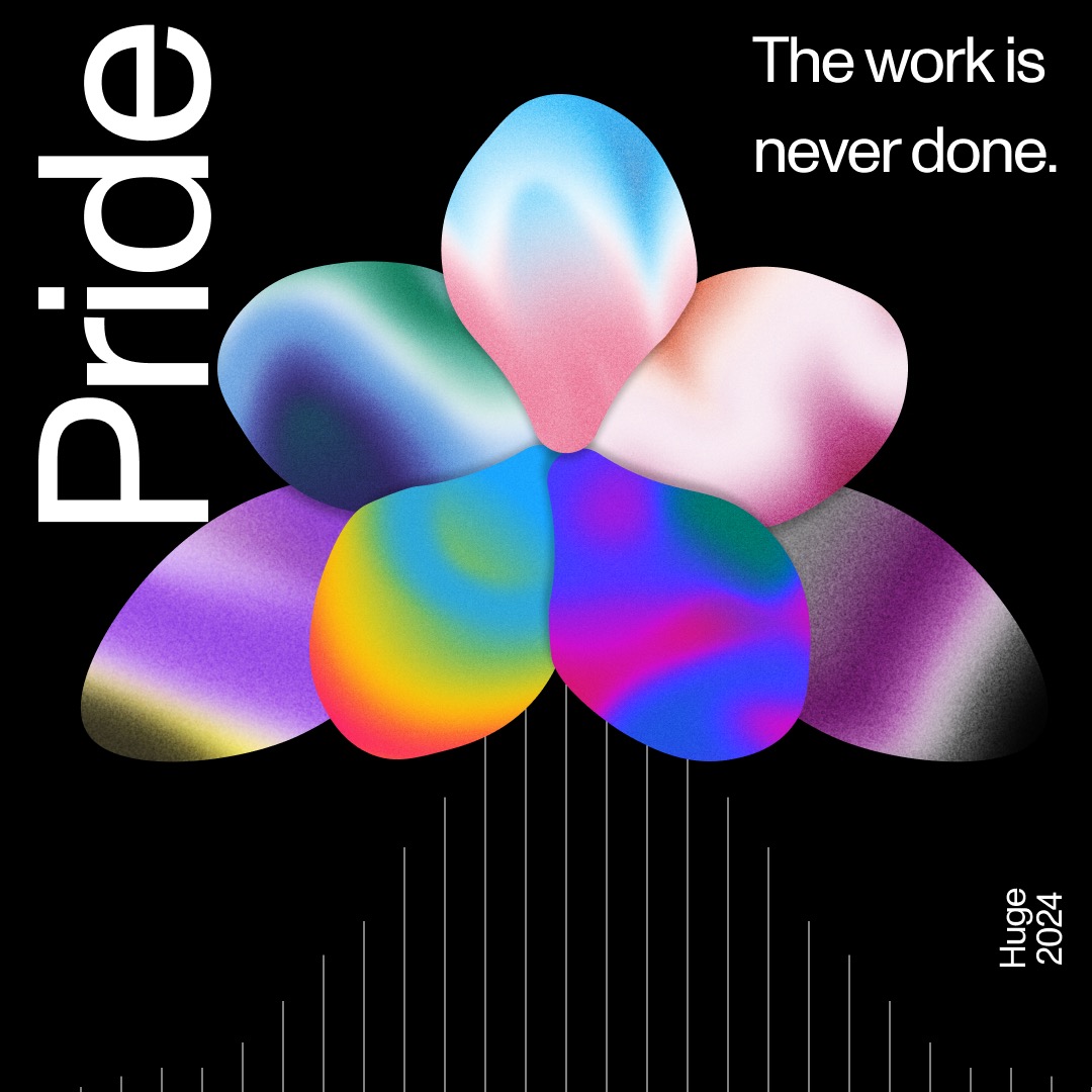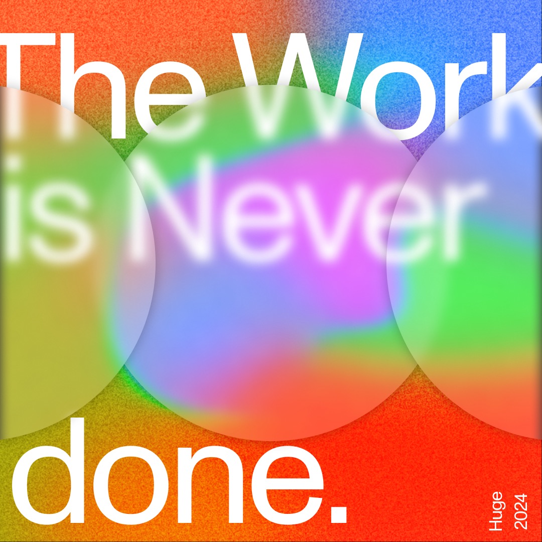 As Pride Month approached, the challenge was to create impactful content for Huge's social media and internal communications channels. Inspired by the DE&I team's 2024 slogan, "The work is never done," I aimed to develop assets that resonated with the LGBTQ+ community's history of ongoing struggle and resilience.